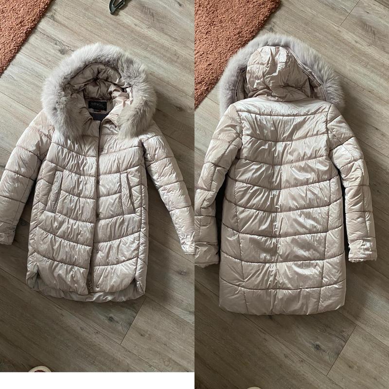 Детский пуховик удлиненный с капюшоном и натуральным мехом,в идеальном состоянии,без дефектов.Очень теплый.утеплитель не тоненький, до половины флисовая тёплая подкладка.Застежка-доброчная молния с двумя бегунками и кнопки.Красные на кнопках и утепленные флисом.Капюшон не снимается, затягивается на кулиску,натуральный мех можно снять(на пуговицах).На рукавах трикотажные манжеты.Колир -перламутровая пудра (фото не передает).Размер указан 134-140 Ориентируйтесь на замеры: длина изделия по спинке-80 см, перед чуточку короче.Рукав-59см.Ширина под рукавами около 44см.Крий прямой. Этот пуховик согреет ребенка при сильных морозах и при непогоде (тканика водоотталкивающая)
