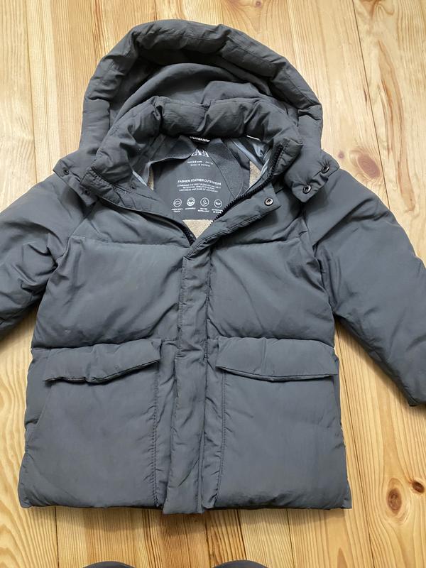 Дуже гарна дитяча куртка пуховик, в сірому кольорі,по боках кнопки, на замку, з капішоном, дуже тепла, на 5-7 років, пише 116см