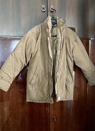 Толстый синтепон. Одевался пару раз. Замочек не рабочий, под замену, И недостаток-мех на капюшоне испортился в результате хранения. Полуобхват груди - 52см. Талии, бёдер - 52см, на бёдрах есть вставки-замочки, можно расстегнуть чтобы шире были бёдра. Длина - 68см, длина рукава- 51см, длина проката рукава - 7см, можно длину отрегулировать