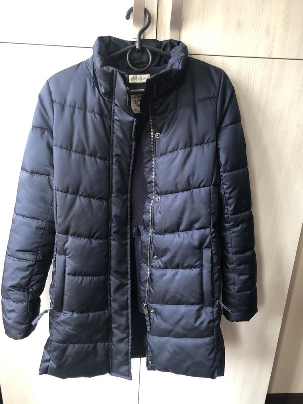 Темно-синій пуховик на дівчинку 11-13 років. В комплекті є капішон з хутром