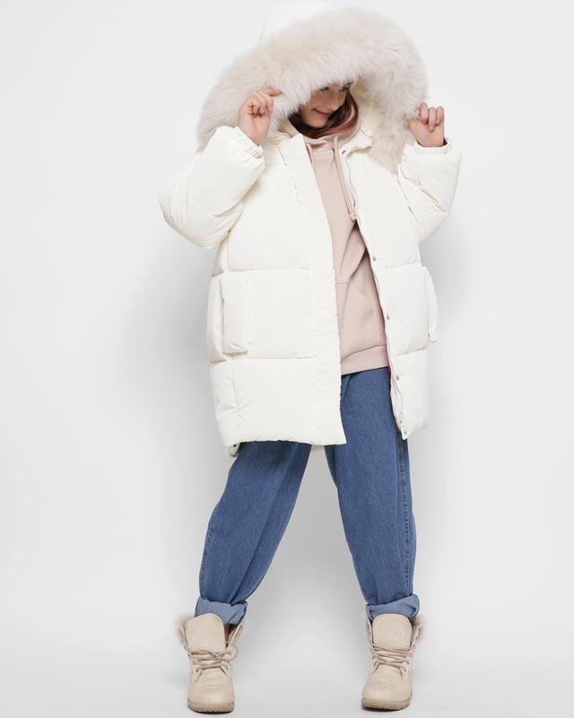 Зимняя куртка с вышивкой Vogue для девочек от 6 до 17 лет. Наполнитель экопух, легкий и гипоаллергенный, выдерживает холод до -25 °C. Приятная бархатная ткань Velutto в сочетании с трендовым силуэтом «кокон». Цельный капюшон со съемным мехом. Три кармана – 2 боковых, 1 внутренний. Манжеты для дополнительной защиты от холода. Ширина капюшона и низ куртки регулируются. Длина: 75 см Рост модели: 145 см Материал: Плащевая ткань Velutto Рукав: 48 см Сезон: Зима Состав: 90% Polyester; 10% Polyamide Тип застежки: Молния, кнопка Утеплитель: Экопух 260 Мех: Песец