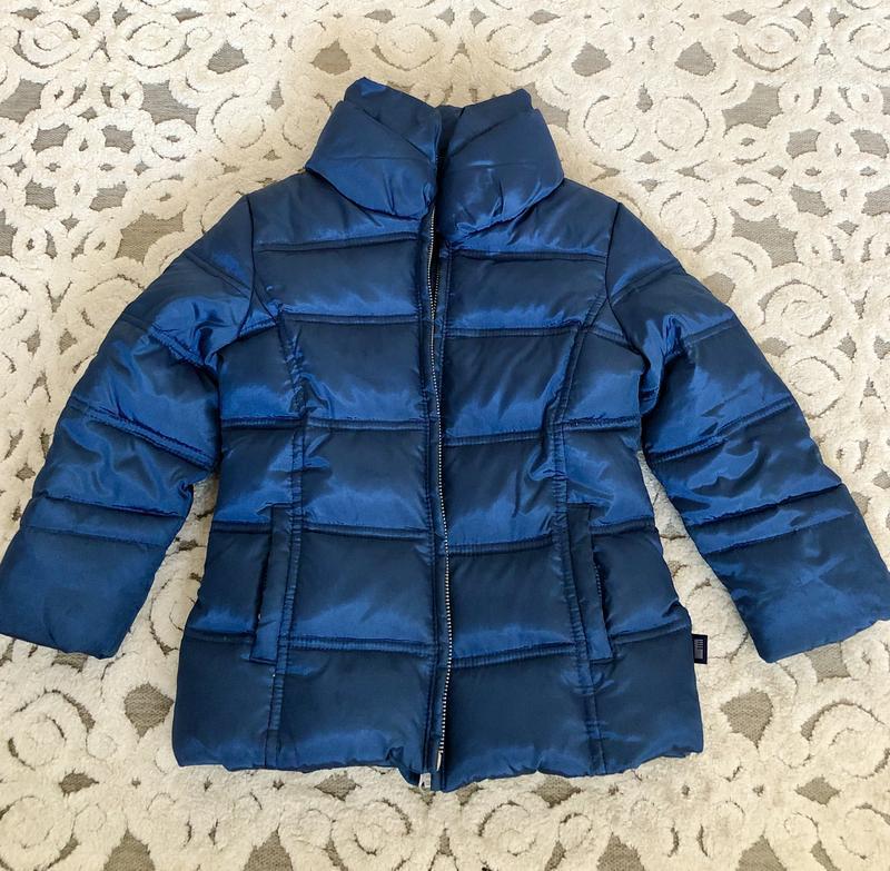 Куртка Original Marines.Холодная осень.Наполнитель-пух/перо.Размер указан 2 года, но большемерит.З 2-х можно носить как полупальто).Замеры: длина 44 см, рукав от плеча 35,5 см; плечи 29 см;от подмышки до подмышки 37 см. Состояние отлично. Цвет в реале сине-голубой с легким перламутром) Ближний передает фото 2 и 4.