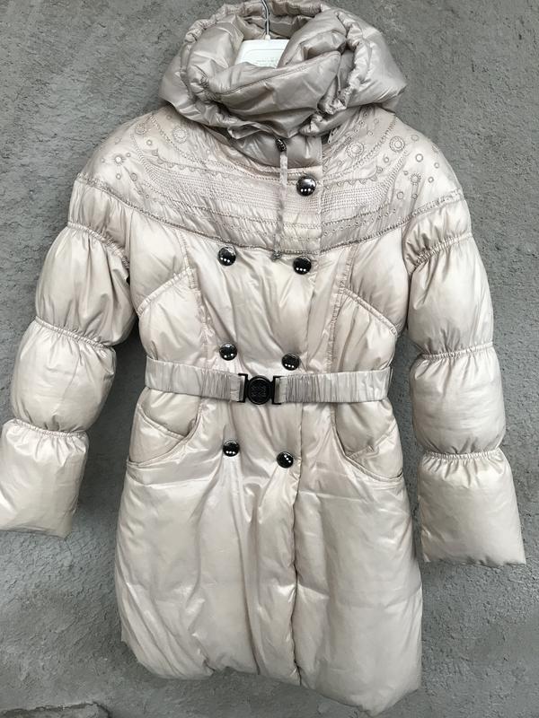 Пуховик зимний на девочку в очень хорошем состоянии, но не работает замок ( но можно застегивать на кнопки) . Длина Рукава от горловины 62 см, ПОГ-40, ПОБ-44 см длина по спинке 79 см