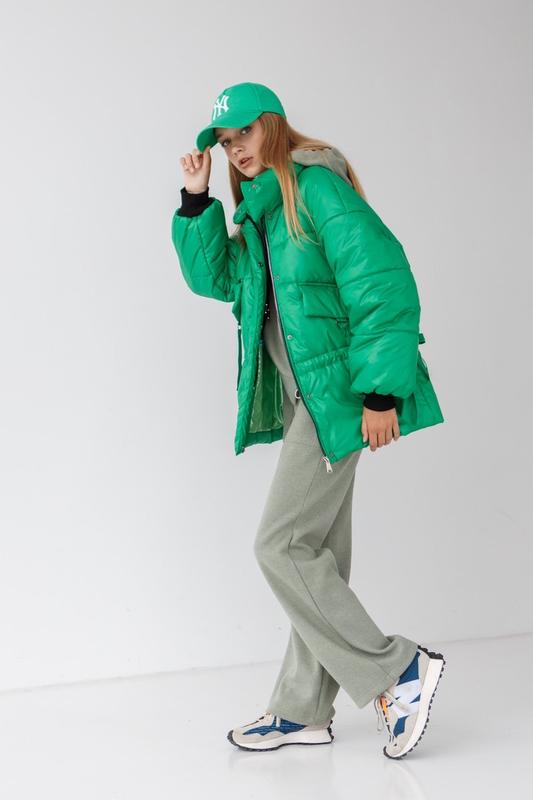 Яскравий💚 Размер 152: полная длина рукава от ворота 62 и резинка 6, длина по внут шву 38 и резинка 6. Длина по спинке 65. От подмышки до подмышки 50.