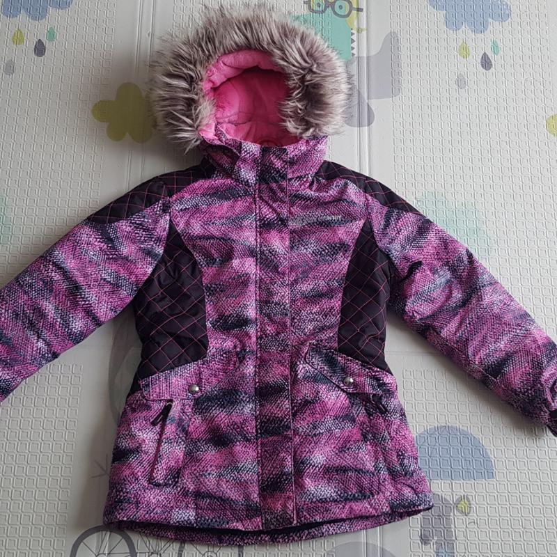Классная термо куртка от известного американского производителя Free Country Оригинал. Куплена в Америке. Состояние идеальное! Куртка отличного качества, красивая, практичная, тёплая и комфортная. Водо и ветронепроницаемая. Грязеотталкивающее покрытие. Внутри капюшон, ворот и грудка на плюшевой подкладке. Капюшон отстёгивается и планка, к которой он пришит, прячется в ворот, скрывая липучки. Молния возле горла закрыта защитной планкой. Рукава на резинке и липучке. Сзади на поясе утяжка. Мех на капюшоне искусственный. Наполнитель: холлофайбер. Размер на бирке 10/12 Замеры: Плечи 37 см ПОГ 45 см ПОТ 41 см Ширина внизу 51 см Длина спереди 61 см Длина по спинке 64 см Длина рукава 53 см Замеры делала по верху куртки, может быть погрешность в пару миллиметров.