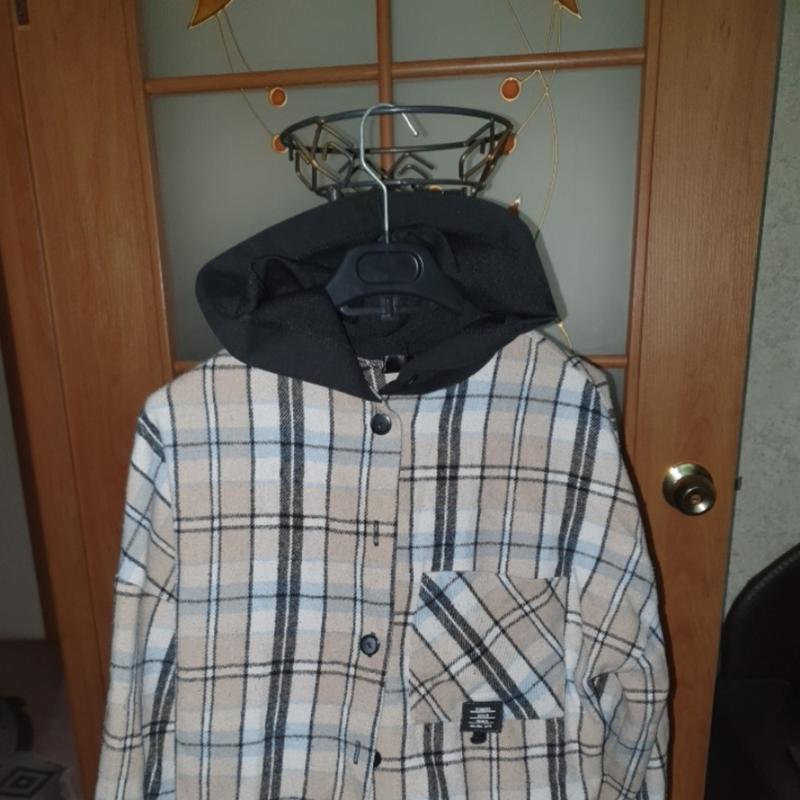 девчачья рубашка с капюшоном, байковая. 8-9 р. длина 58см