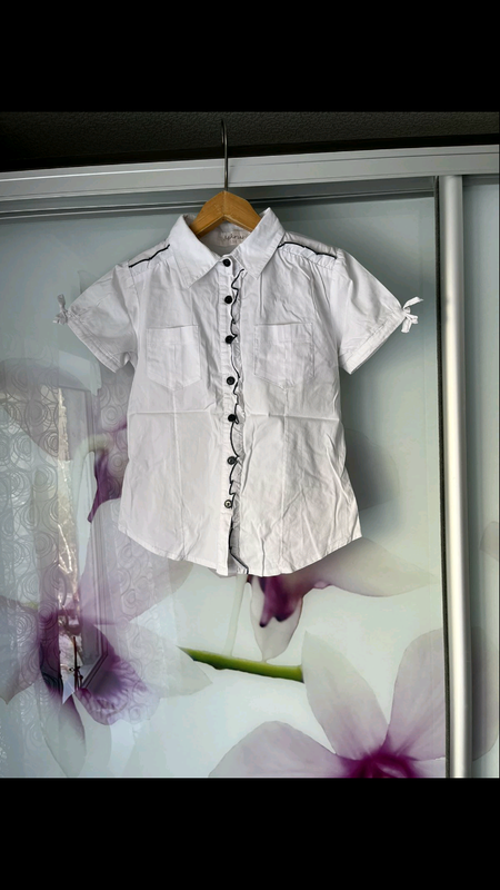 Блуза рубашка на девочку. Белоснежная. Котон 100%. Окантовка чорна. Стан на 5. Без недостатков. Размер 122