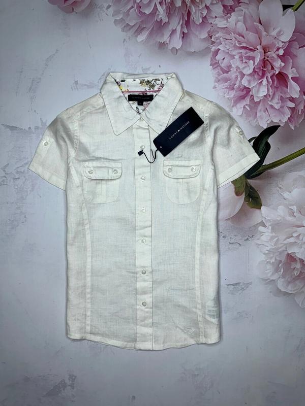 нова сорочка для дівчинки. 100% Льон. Tommy Hilfiger оригінал 10 років довжина 52 (46 по краю). ПОГ 39.