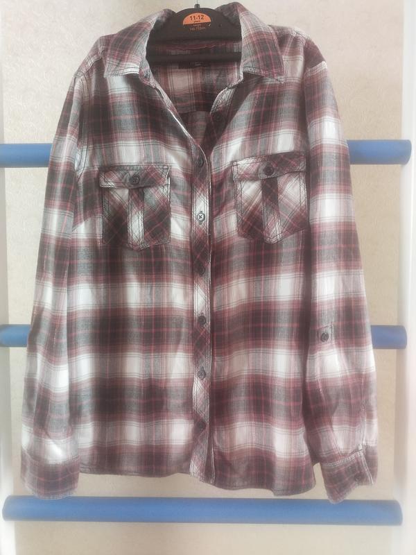 Рубашка в клетку, ткань тоненькая с люрексовой нитью, приятная к телу 99 процентов хлопок Подойдет на возраст 8-10 лет Длина 59.5 см Ширина 42 см Длина рукава 56 см