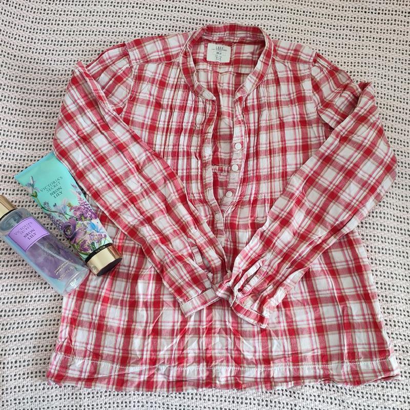 Тоненькая коттоновая рубашка в клетку Рост 146- 152см Замеры: длина 58 см плечи 30 см длина рукава 55 см ПОГ 39 см ПОТ 45 см ПОБ 50 см Высылаю укр новой почтой