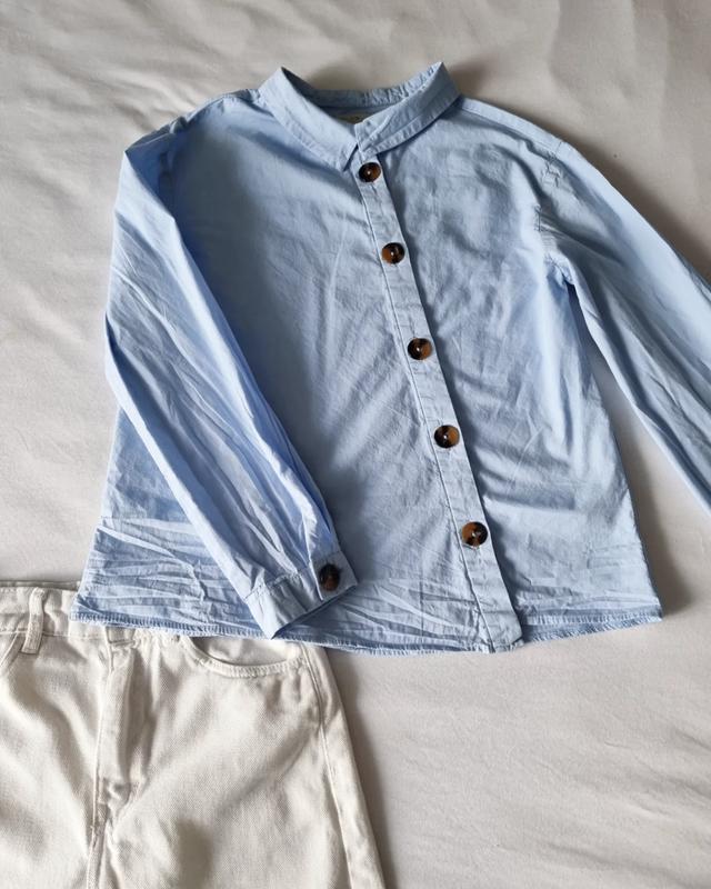 невероятная рубашка небесного цвета с элементом асимметрии в идеалном состоянии