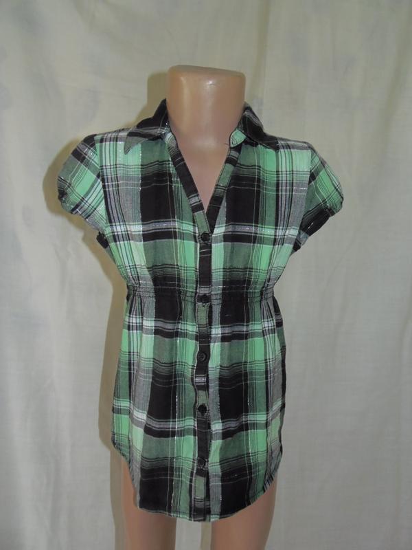 сорочка в клітку для дівчинки на 9-10 років у відмінному стані, 99% бавовна, 1% металізована нитка довжина 53см, під пахвами 34см, пояс 28см є гумка, тягнеться, плече 10см, рукав 10см, плечі 28см відправка після оплати