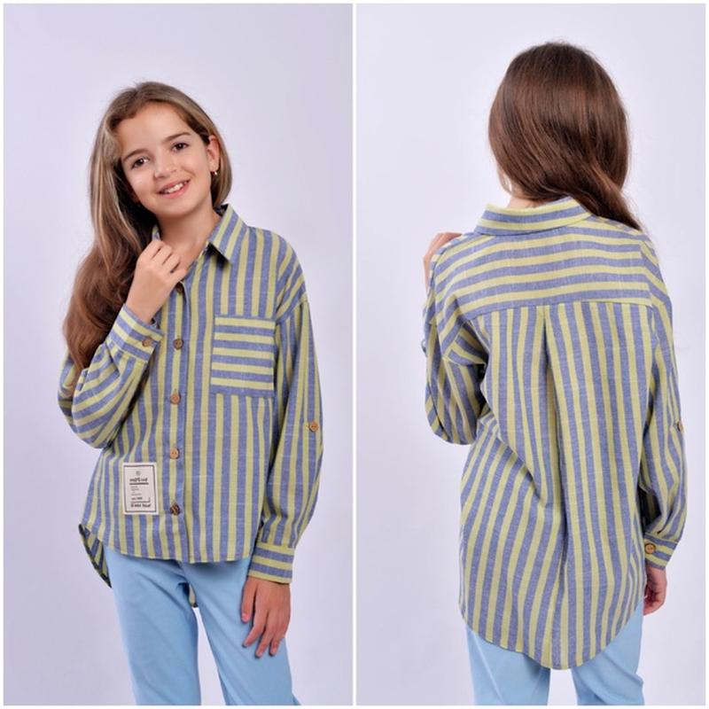 Рубашка стильная из натурального льна👍 Нашивка пришита, рукав можно сделать 3/4. Полномерная! Хорошее качество! Размер 140 - 146 - 152 - 158 - 164 - candy