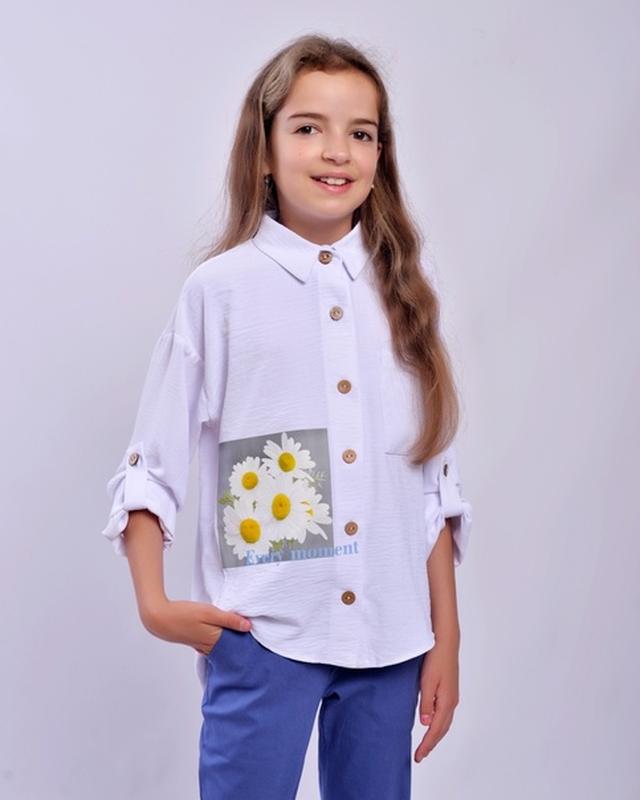 Рубашка стильная Ткань американский креп С качественной термонаклейкой рукав можно сделать 3/4 ПОЛНОМЕРНЫЕ Хорошее качество Рост 140- 146- 152- 158- 164- ÷