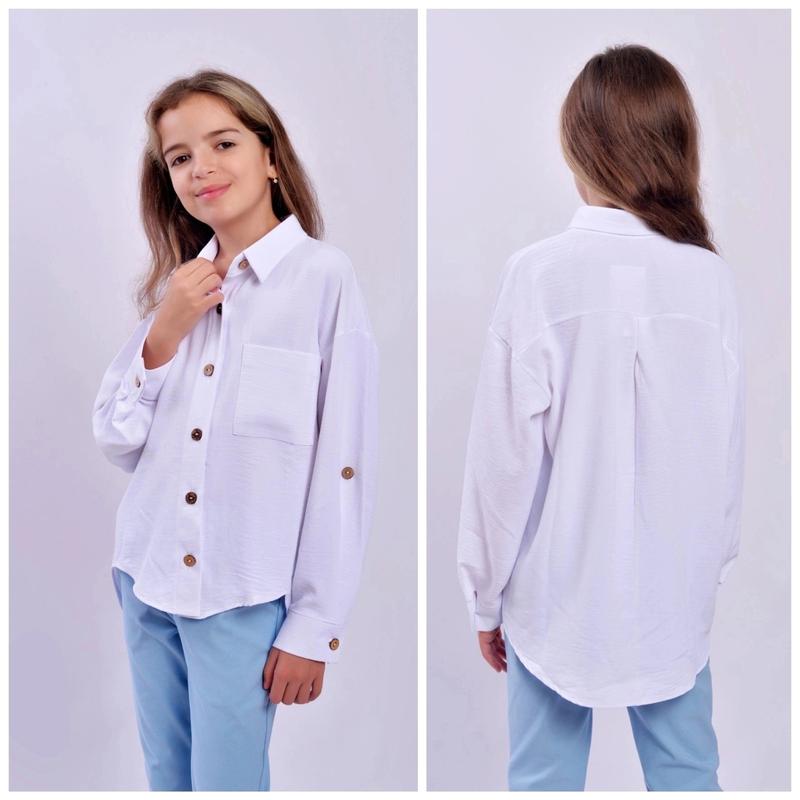 Арт 1отправка четверг-пятница Рубашка стильная Ткань американский крем Нашивка пришитита рукав можно сделать 3/4 ПОЛНОМЕРНЫЕ Хорошее качество Рекомендую Цена 535 грн Рост 140-1шт 146-1шт 152-1шт 158-1шт 164-1шт