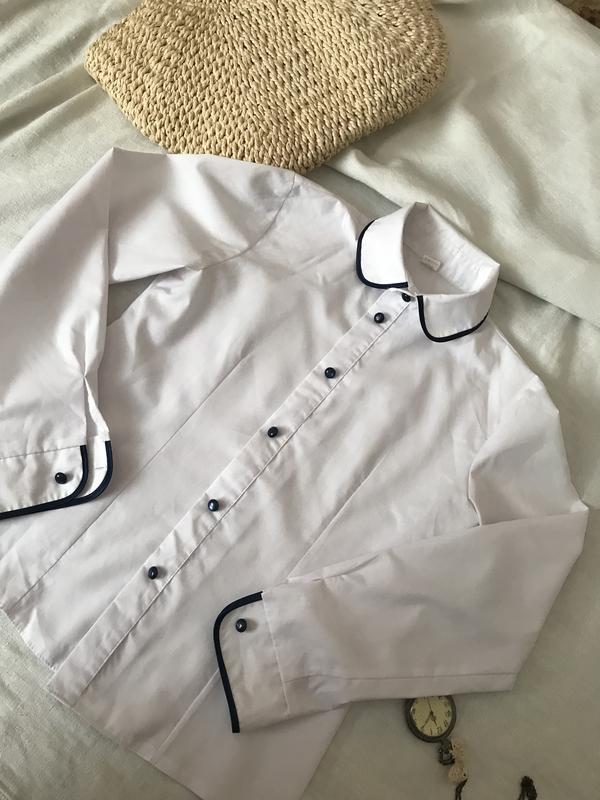 Детская белая рубашка с синими пуговицами
