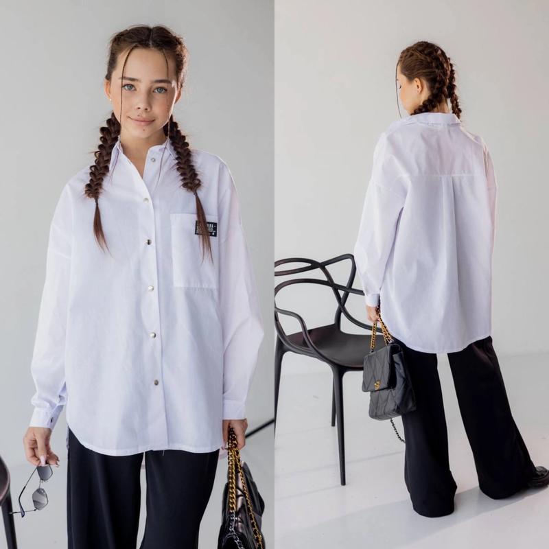 Сорочка OVERSIZE на кнопках тканина бавовна СУПЕР КАЧЕСТВО! цена 585 грн размер/длин. по переду/пог/рукав от горловины похибка+-2см 140-146/64/53/62-1шт 146-152/66/54/65-1шт 152-158/68/55/66-1шт 158-164/70/56/70-1шт 164-170/73/57/72-1шт