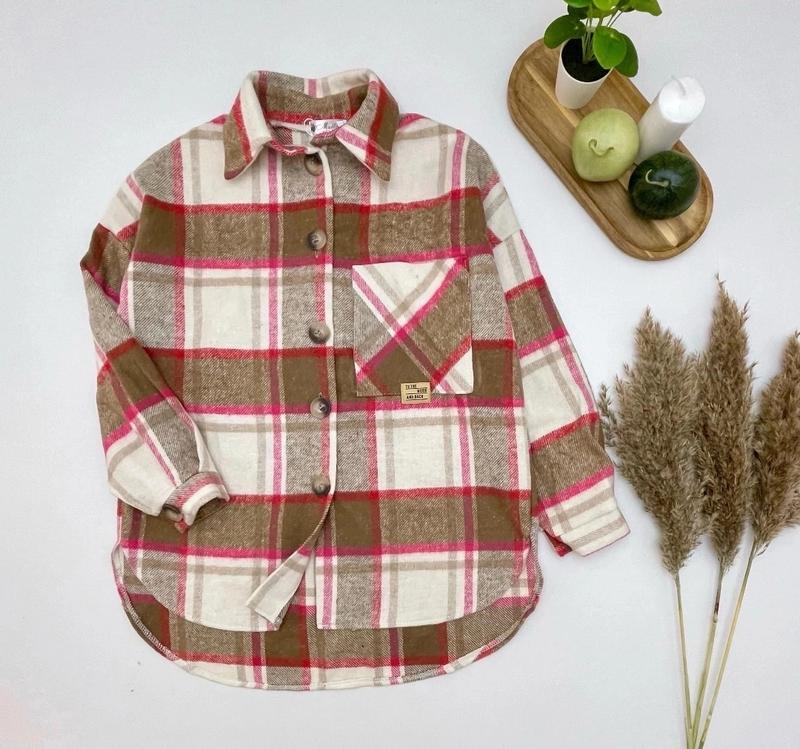 Рубашка в клетку OVERSIZE, удлиненная ткань мягкая теплая байка Хорошее качество!!! рост/длин. по переду/пог/рукав от горловины похибка +-2см 140/64/53/62-1шт