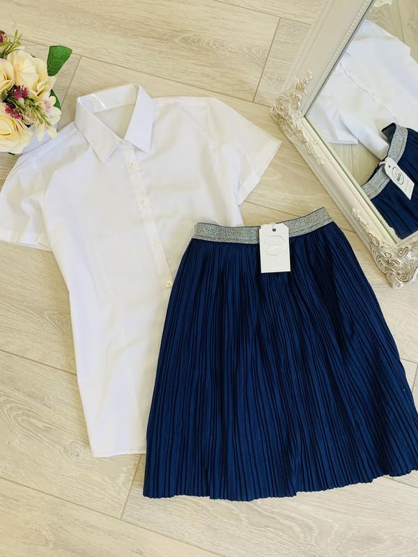Белоснежная рубашка с коротким рукавом На пуговицах имеет вытачки по спине Размер 158/164 см