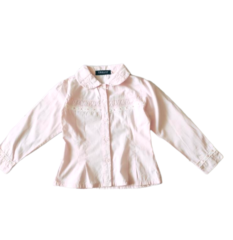 Рубашка Traum нежного розового цвета. Размер - 7 лет, ориентировано на рост 116-122 см. 100% хлопок. Замеры: рукав-40 см + 8 см плече, пог 32 см, пот 33 см, пос 40 см, длина 43 см.
