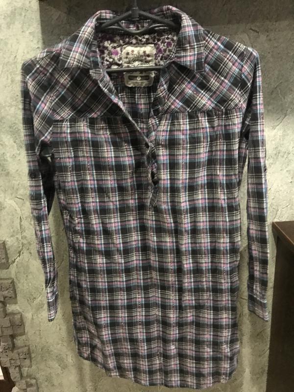 Рубашка размер 10-12 лет , полуобхват груди 42, полуобхват бёдер 44, длина 70, ширина плечей 34, длина рукава от плеча 48, состояние хорошее пересылаю любой почтой
