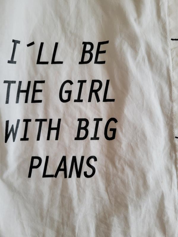 Стильна біла сорочка 100% бавовна Mango 7-8 років, на зріст 128см Зпереду напис I'll be girl with big plans Заміри: Ширина переду 43см, довжина від плеча 58 см, по спинці 62см, довжина рукава від горловини 52см, ширина в плечах 39 см
