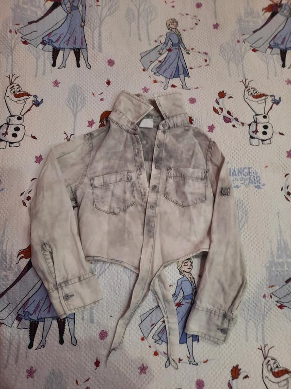 рубашка джинсовая на пуговицах и на заясках.