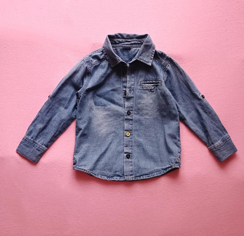Классная хлопковая джинсовая рубашка на девочку 3-4 рочки