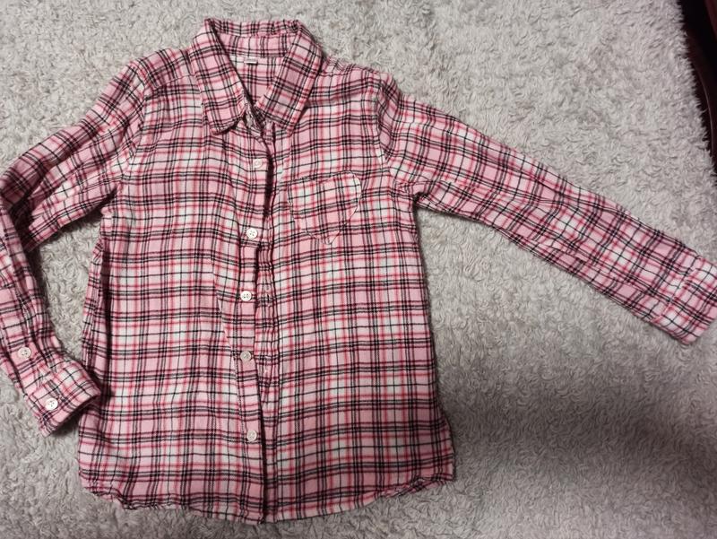 Рубашка в клеточку на девочку 5-6 лет. Мягкая и приятная к телу. Кармашек в форме сердечка.
