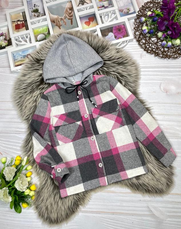 Теплая стильная рубашка с капюшоном Застегивается на пуговицы Ткань шерсть кашемир, + капюшон трехнить пенье Замеры: длина/пог/рукав от плеча 140 - 54/43/48 146 - 55/44/52 152 - 58/45/54 158 - 60/46/56