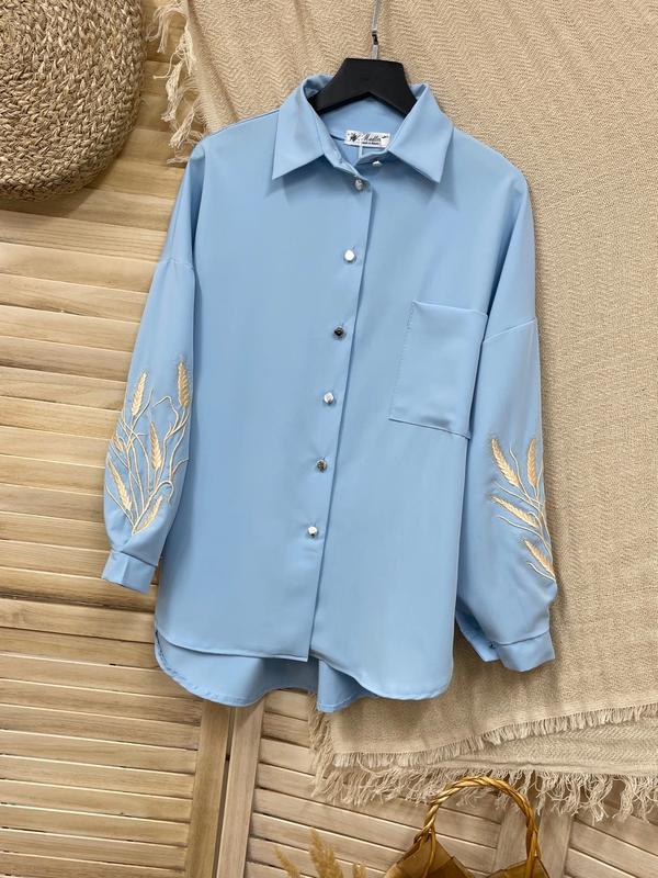 Таня арт 4810 НОВИНКА! Рубашка с вышивкой кроя овер на пуговицах ткань тиар СУПЕР КАЧЕСТВО! рост/длина по переду/пог/рукав от горловины похибка +-2см 140-146/64/53/62-1шт 146-152/66/54/64-1шт 152-158/68/55/66-1шт 158-164/70/56/69-1шт 164-170/72/58/72-1шт