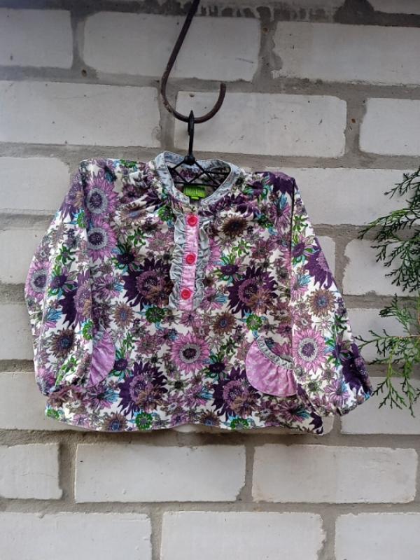 3-4р, микровельвет, мягкая, длина 37,пог 37, рукав от шеи 42, по внутреннему 27, пышный рукав на резинке,е карманы, фасон типа разлетайка,станы идеаль, очень милые, красочные цвета и принт