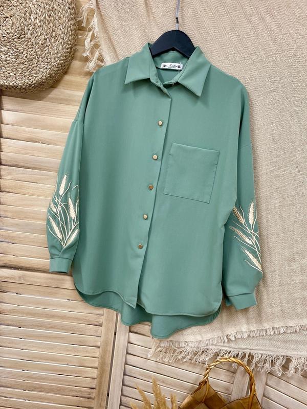 2 отправка четвер НОВИНКА! Рубашка с вышивкой кроя овер на пуговицах ткань тиар СУПЕР КАЧЕСТВО! рост/длина по переду/пог/рукав от горловины похибка +-2см 140-146/64/53/62-2шт+1шт 146-152/66/54/64-2шт+1шт 152-158/68/55/66-2шт+1шт 158-164/70/56/69-2шт+ 164-170/72/58/72-2шт+1шт