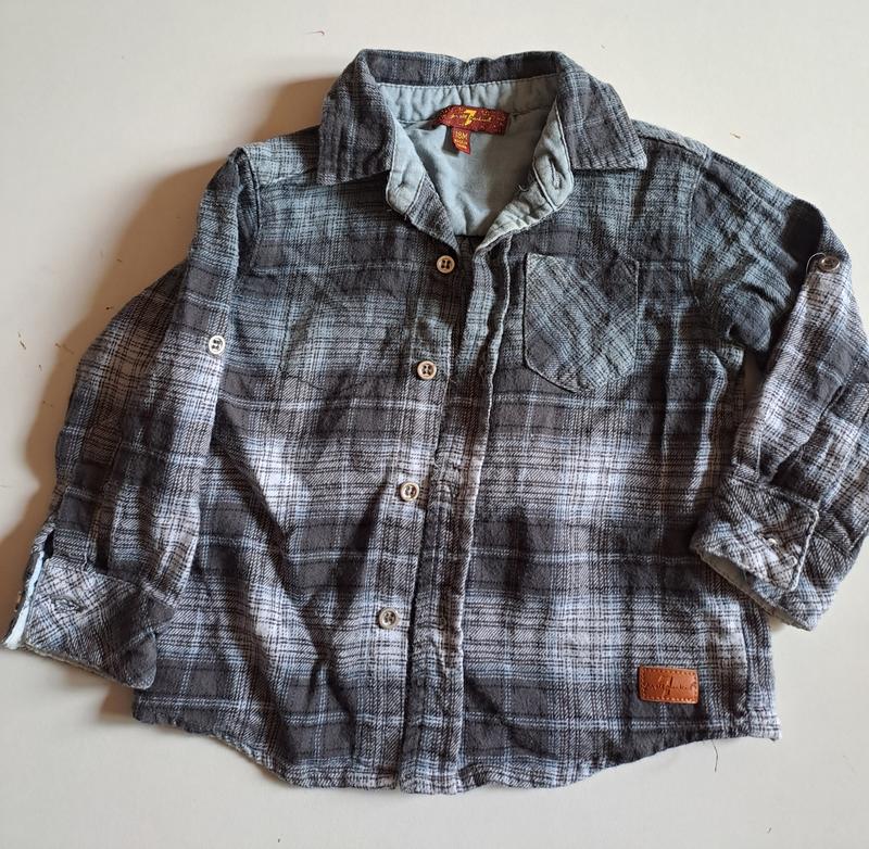 Рубашка байковая на парня 1-1,6 года (18 мес). Состояние хорошее. Тепленькая. Больше для дома подойдет.