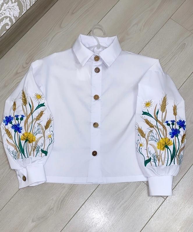 В НАЯВНОСТІ 💞🌿Нежная рубашка Украшена вышивкой Застегивается на пуговицы Тканина котон🌿Рекомендую 😍 💗140(5 шт)-длина 42,пог 43,рукав 60/40 💗146 (нет)-длина 46, пог 45,рукав 62/42 💗152(1 шт)-длина 49, пог 48,рукав 64/44 💗158(3 шт)-длина 52,пог 50,рукав 66/46 +-2 см