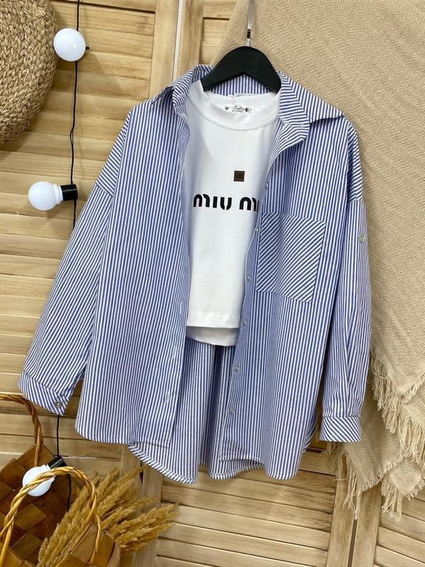 Незаменимый базовый комплект рубашка и футболка посадки овер Рубашка на пуговицах рукав трансформер укороченная футболка с накатом ткань хлопок и кулир Хорошего качества! рост/длин.рубашки по переду/пог/рукав от горловины/длин.футб./пог похибка+-2см 146-152/66/51/63/45/56