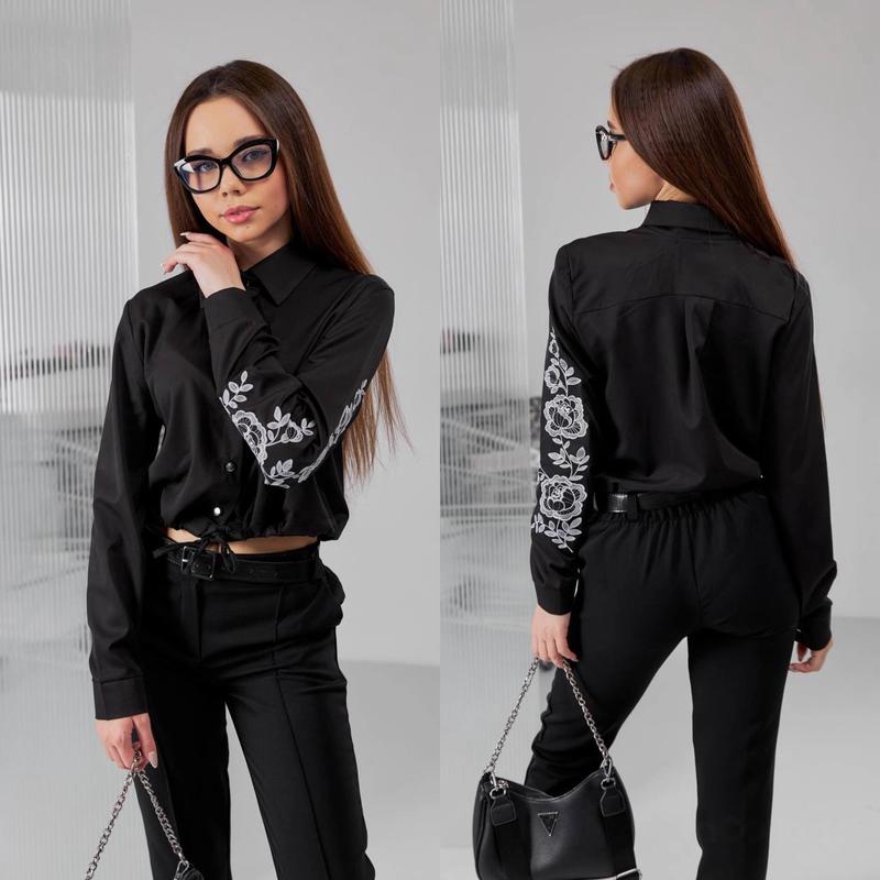 НОВИНКА! Коротка сорочка на кулісці с вышитыми розами по рукаву Ткань софт-диагональ на пуговицах СУПЕР КАЧЕСТВО! рост/длина/пог/рукав от горловины похибка +-2см 140-146/37/42/58 152-158/41/45/63 164-170/45/47/68