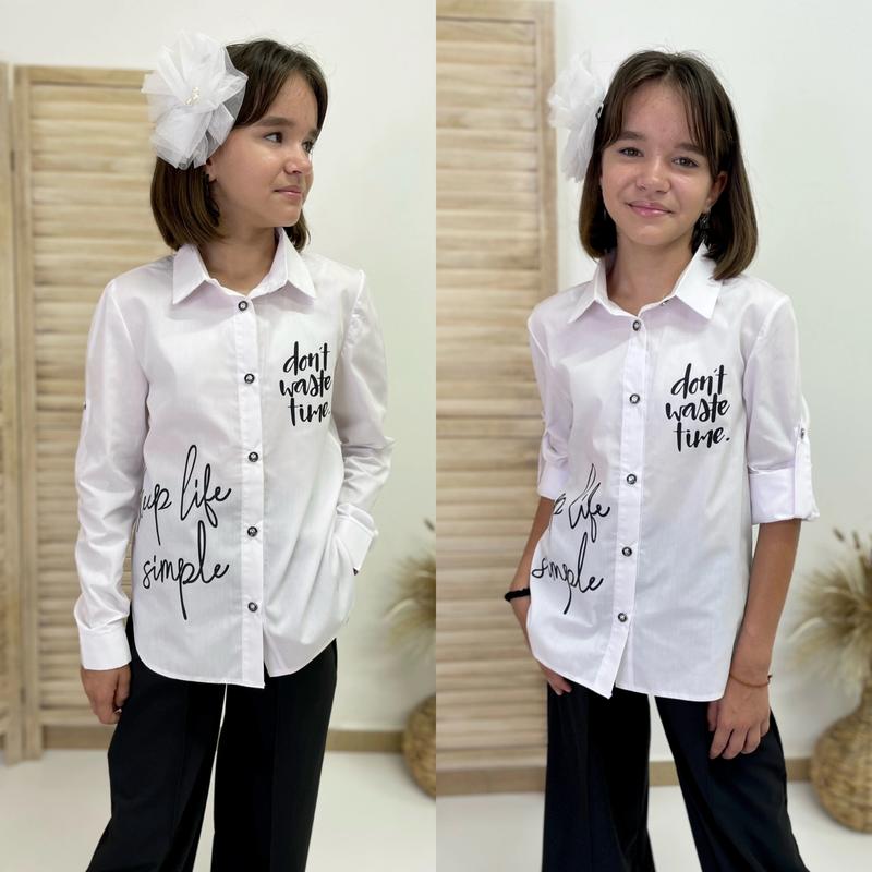 Таня арт 5287 Рубашка на пуговицах с накатом тканина бавовна рукав может быть короткий СУПЕР КАЧЕСТВО! рост/длин. по переду/пог/рукав от горловины похибка+-2см 140/51/39/58-3шт 146/52/40/61-3шт 152/55/41/64-3шт 158/59/44/67-3шт 164/62/46/69-3шт
