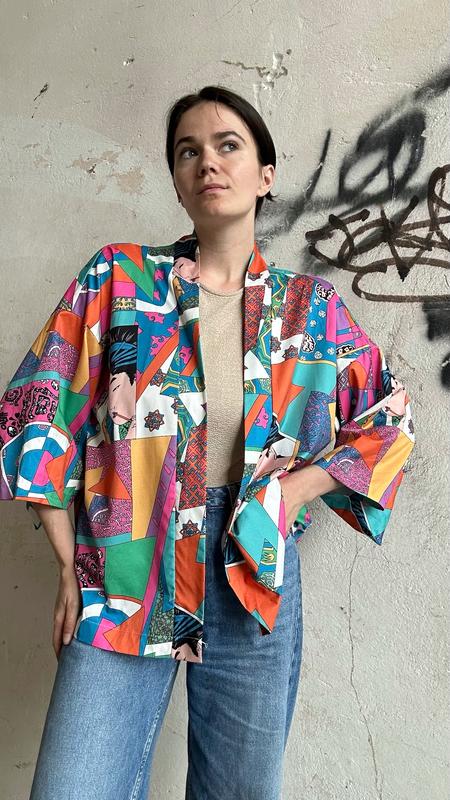 Вдохновленная традиционными кимоно, что по меньшей мере прослеживается сквозь редкий крой рукавиков: они широкие и зашитые почти до середины. Размер уместен. Длина 72 см Рукав от горловины 58 см