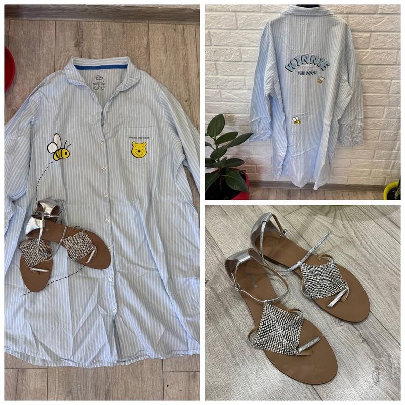 Платье-рубашка свободного кроя от Дисней Размер XL будет и на L, исходил раз Длина 100 см, ПОГ 64 см Цена 580 грн! Красивые босоножки Dune Размер 40 см (26-26.5 стелька) Выходили раз в помещении Цена 550 грн!