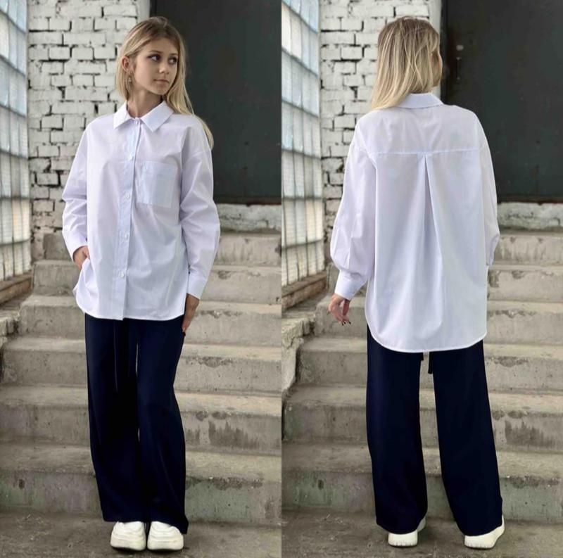 Очень стильная рубашка оверсайз! Ткань Коттон 100% ! Размеры 34,36,38,40,42. Цена 810 грн ! Дополняет шикарно образ штаны Палаццо из отличной ткани - креп костюмка, с роста 128 по 160 см , цена 860 грн !