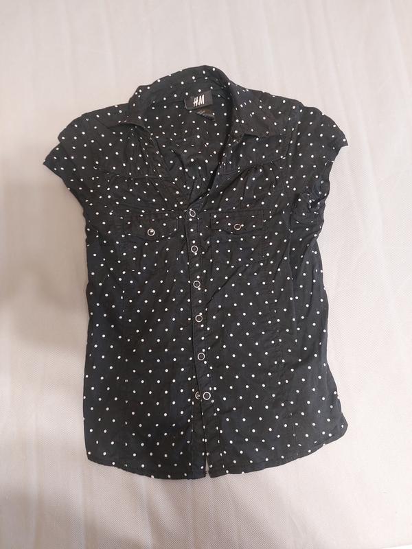 рубашка в горошек детская h&m 8-9 лет Длинная 46 пог38 пот (спина на резинке) 32-39 в идеальном состоянии, на кнопках бавовна