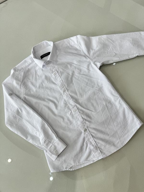 Рубашка белая Wanex невероятного качества. Отлично подойдет школьникам. На рукаве имеется пуговица, чтобы подкачивать рукава. одевалась раз три. Без пятен.