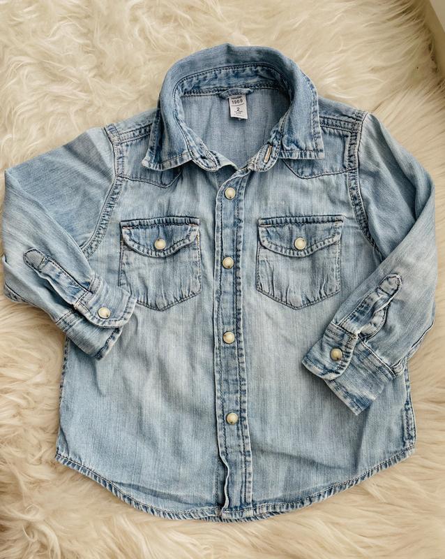 Рубашка джинсовая Gap на 2 года. В идеале. На кнопочках. Замеры: длина 43, пог 34, рукав 30 см.