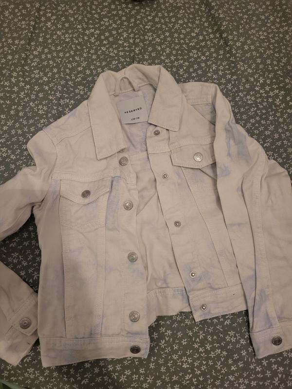 Джинсовка с принтом тай-дай белоголубого цвета, выглядит очень круто, в отличном состоянии