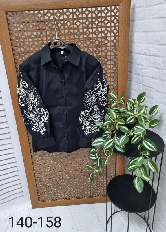 ✅️В НАЯВНОСТІ Рубашка в стиле вышиванки ткань коттон поплин Пуговицы по всей длине вышивка на рукавах 146-1 шт 152-1 шт 158-1 шт ❇️146-длина 56,рукав от горловины 60, пог 44 ❇️152-длина 59,рукав от горловины 62, пог 45 ❇️158-длина 62,рукав от горловины 64, пог 46 +-1 см