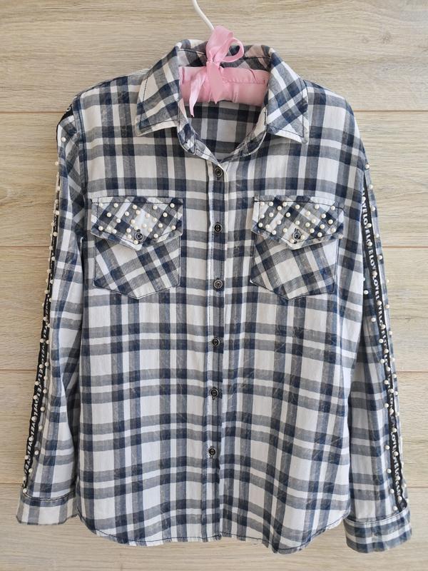 Рубашка в клетку с бусинами
