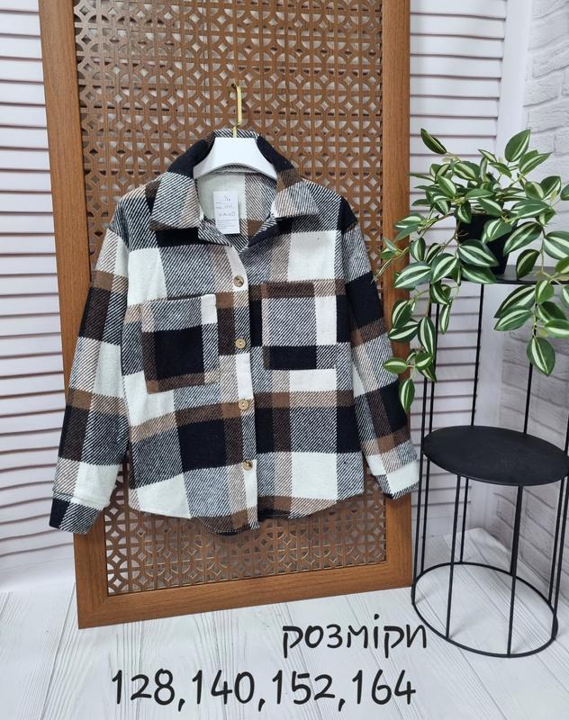 ландиш ⚘️В НАЯВНОСТІ ХІТ СЕЗОНУ Крутая теплая рубашка в клетку Ткань твидовая байка РЕКОМЕНДУЮ! 📍128-134(1 шт)-длина рубашки 52, пог 41,рукав 46/61 📍140-146(1 шт)-длина рубашки 56,пог 43,рукав 48/64 +-1 см