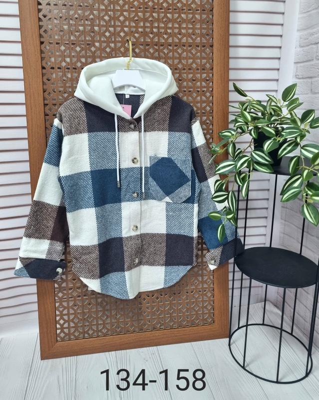 ландиш ✅️В НАЯВНОСТІ Теплая рубашка с капюшоном ткань турецкая твидовая байка имеет теплый капишон (ткань трехнитка с начесом) застегивается на пуговицы в капюшоне рабочий шнурок РЕКОМЕНДУЮ ❗️рукав от горловины 🌷134-длина 58, пог 45,рукав 59 🌷140-длина 60,пог 46,рукав 61 🌷152-длина 66, пог 48,рукав 66 🌷158-длина 70,пог 49,рукав 69