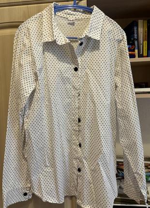 Продам белую хлопковую детскую рубашку в черный горошек. По дополнительной информации воспользуйтесь в личные сообщения.